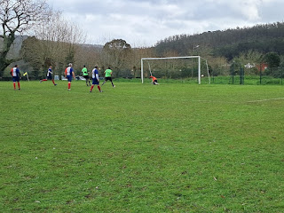 A primeira mitade acabou con un claro 2-0 a favor deles. E decantaron o marcador en dúas ocasións calcadas: centro medido desde un saque de esquina desde a dereita e cabezazo no segundo pau, primeiro de Marcos e despois de Pol. Imperdoable o segundo, claro, porque as xogadas eran clavadas. Aparte dos goles soamente tiraron dúas veces nos primeiros cinco minutos pero os tiros de Marcos e de Maroñas non tiveron especial incidencia. Nós tivemos unha no min. 20 nun centro de Mutio que cabeceou Alberto as mans de Eusebio. E, despois dos goles, sí que tivemos un achegamento serio nunha escapada de Richard pola esquerda que, cando chegou ó fondo, asistiu a Lema pero, en boca de xerro, foi trabado por Eusebio e tirou fora. O árbitro considerou que era falta ó porteiro por ser na área pequena mais Lema foi o primeiro que chegou ó balón. Para nós era penalti. Neses momentos parecía un gol necesario para que estivésemos no partido pero non o foi.